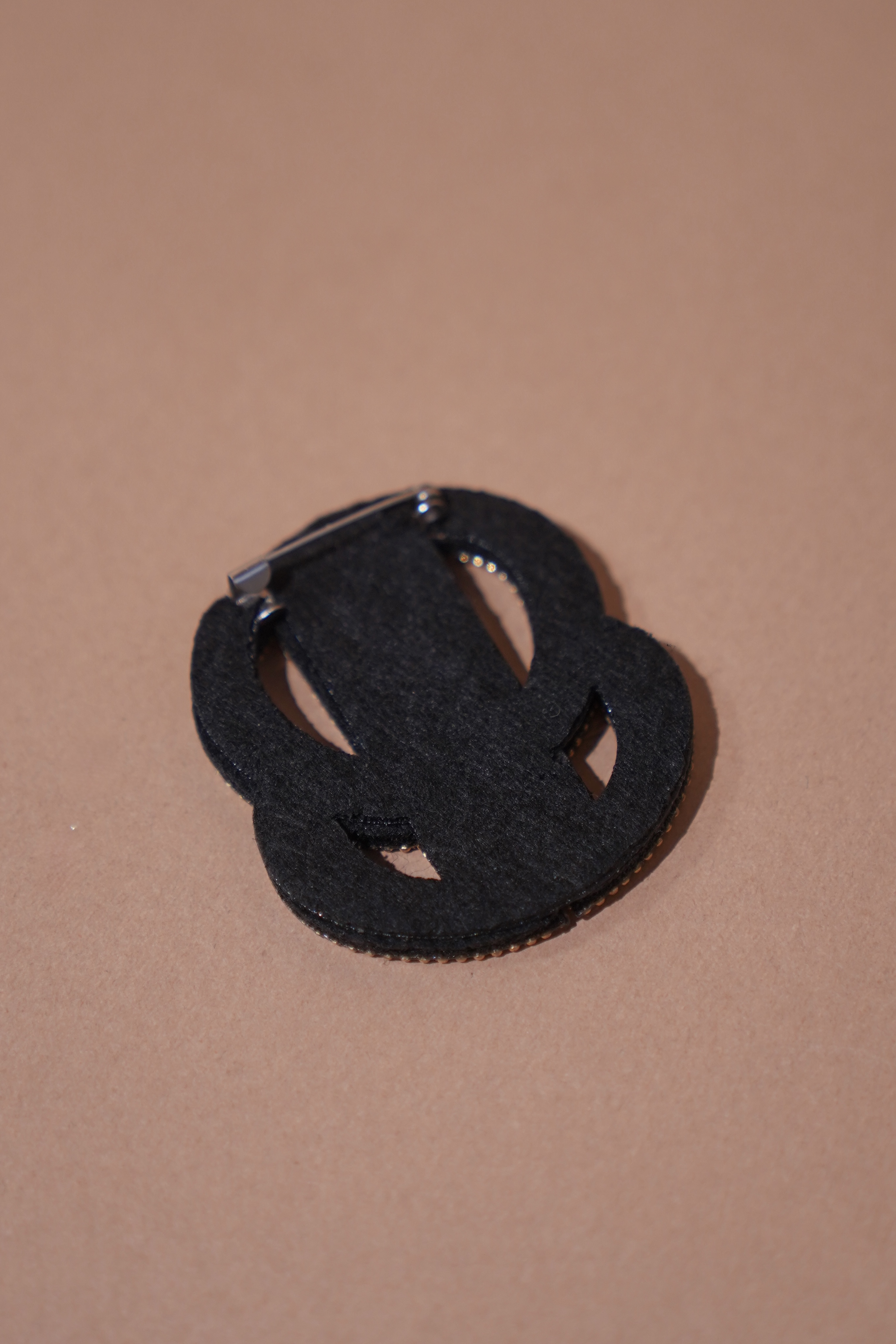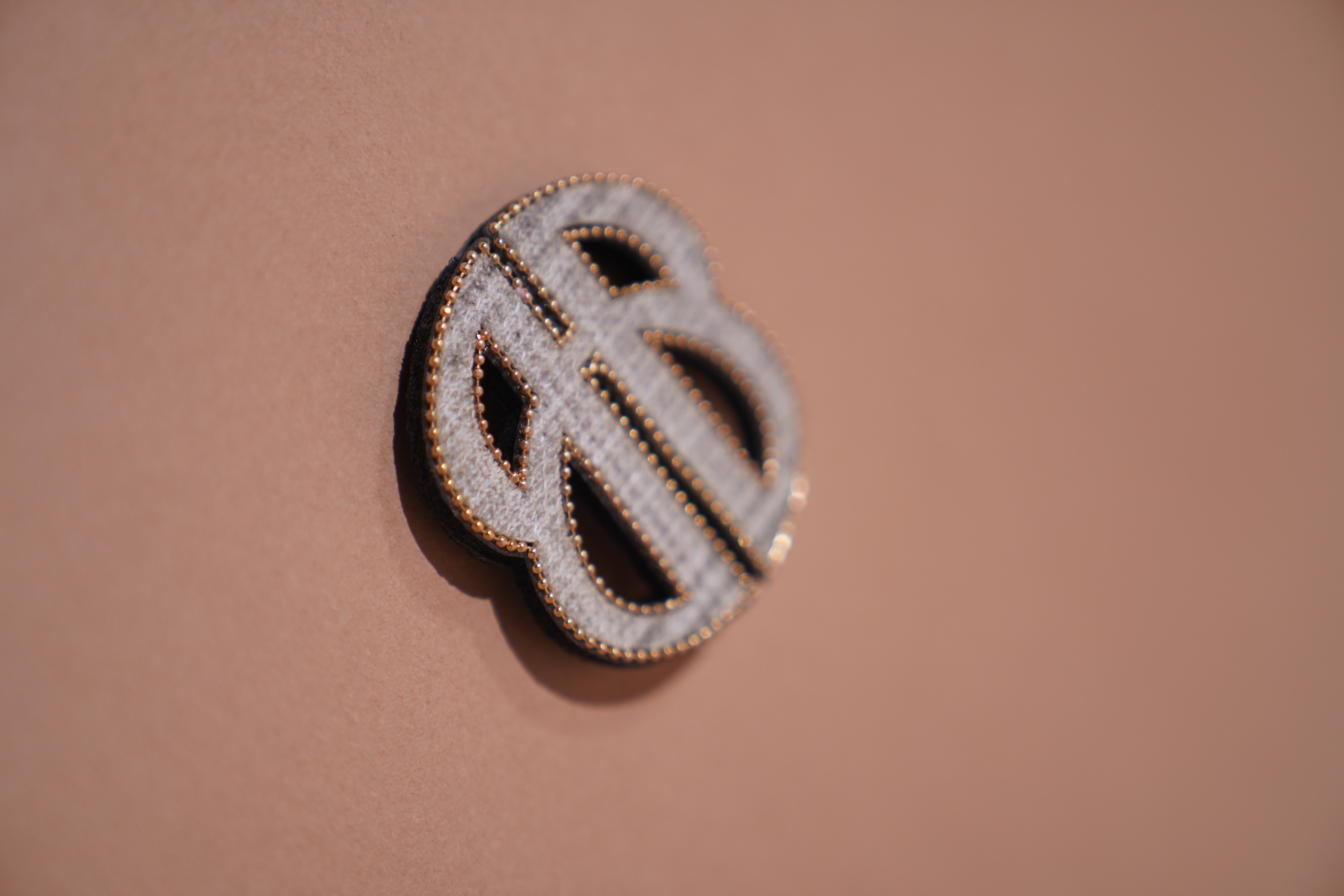 Brosh modern në formë monogrami BB, me ngjyrë krem të butë dhe të rrethuar me detaje metalike në ngjyrë ari. Një aksesor elegant dhe i sofistikuar, i përshtatshëm për çdo stil.