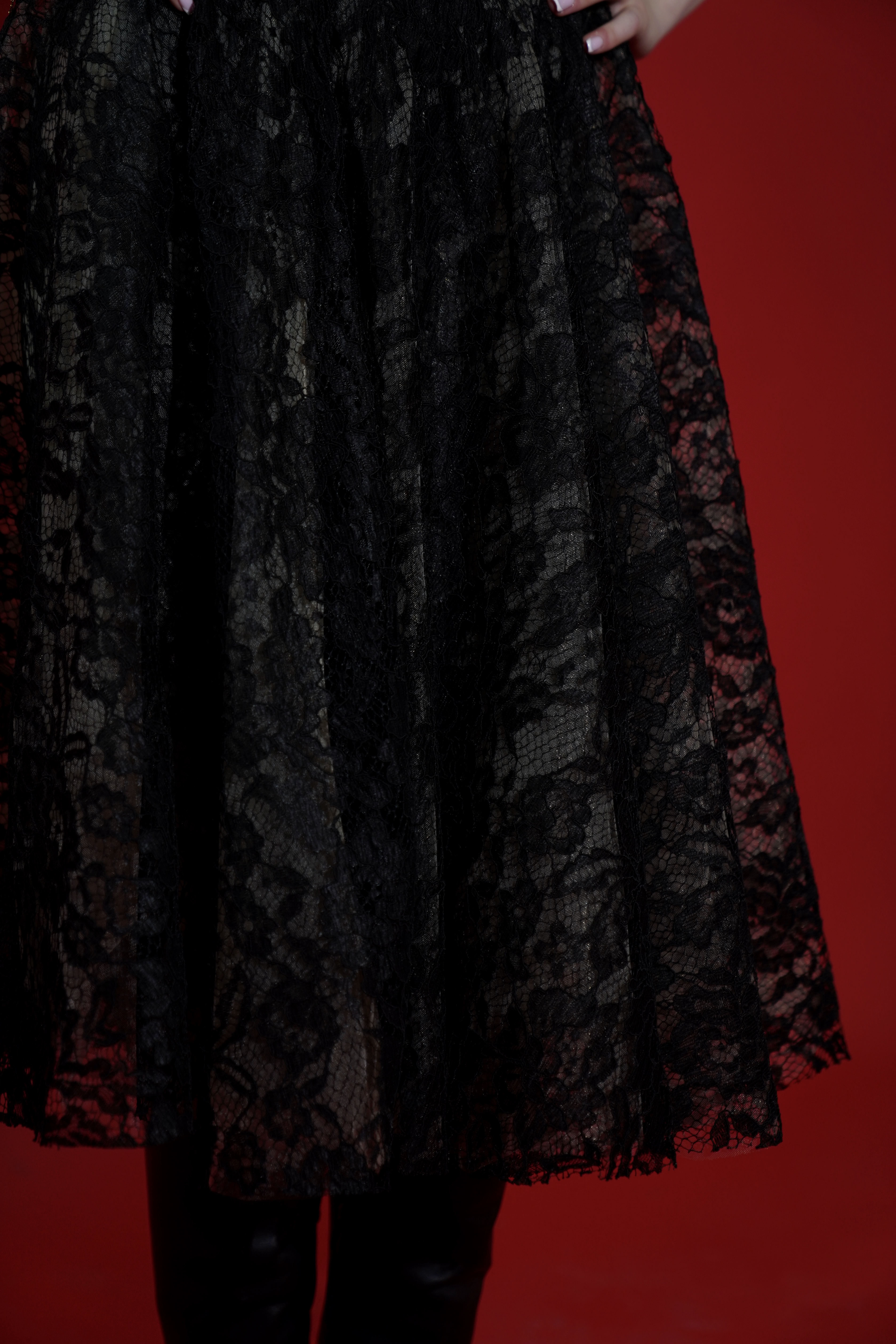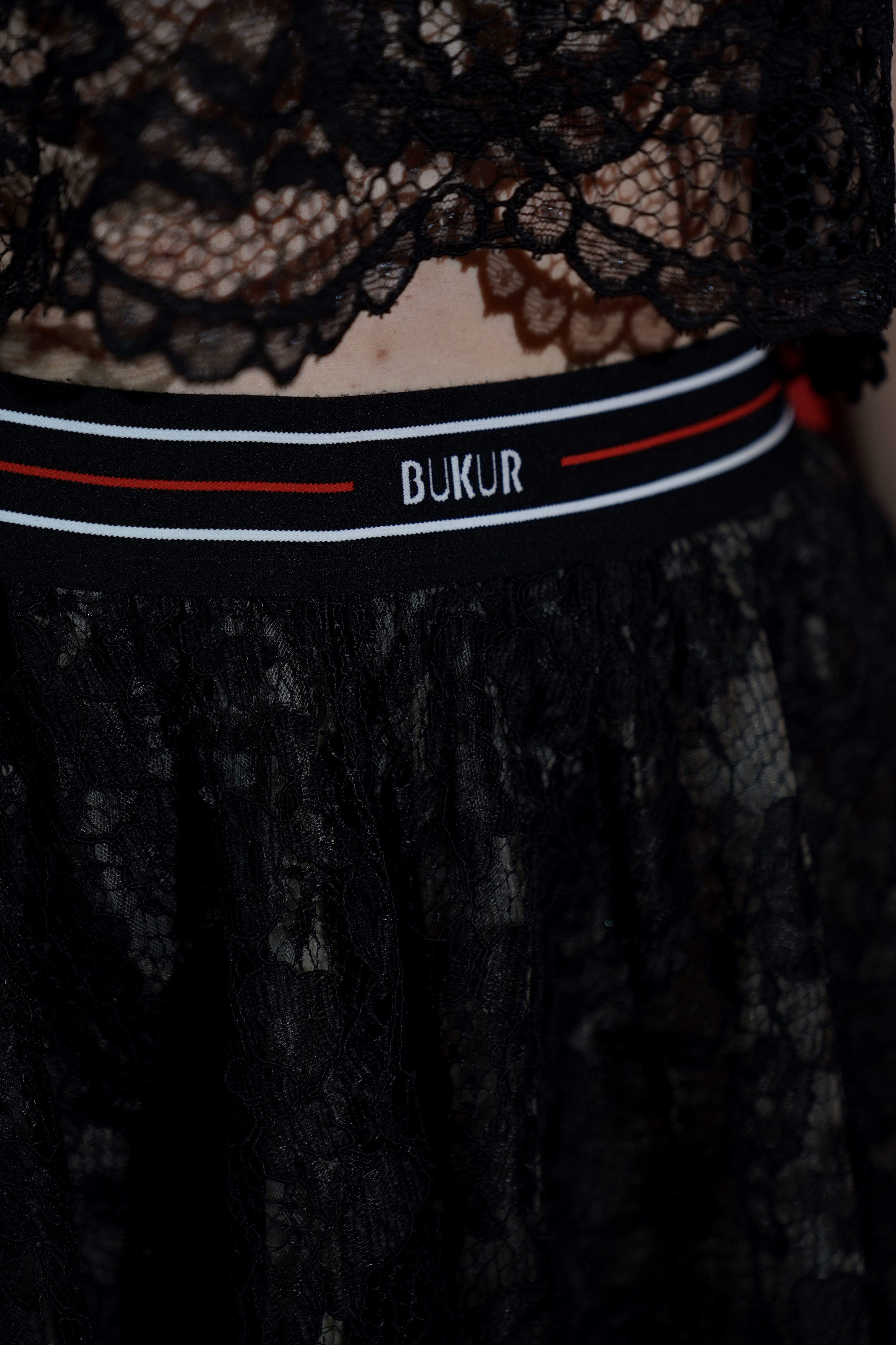 Fund i gjatë qipk nga Bukur sjell një elegancë romantike dhe një efekt magjepsës në lëvizje. Dantella e zezë krijon transparencë delikate, ndërsa vëllimi i pasur i jep fundin një rënie të bukur dhe dramatike. Beli elastik me logon Bukur shton një prekje moderne që balancon perfekt finesën klasike të dantellës.