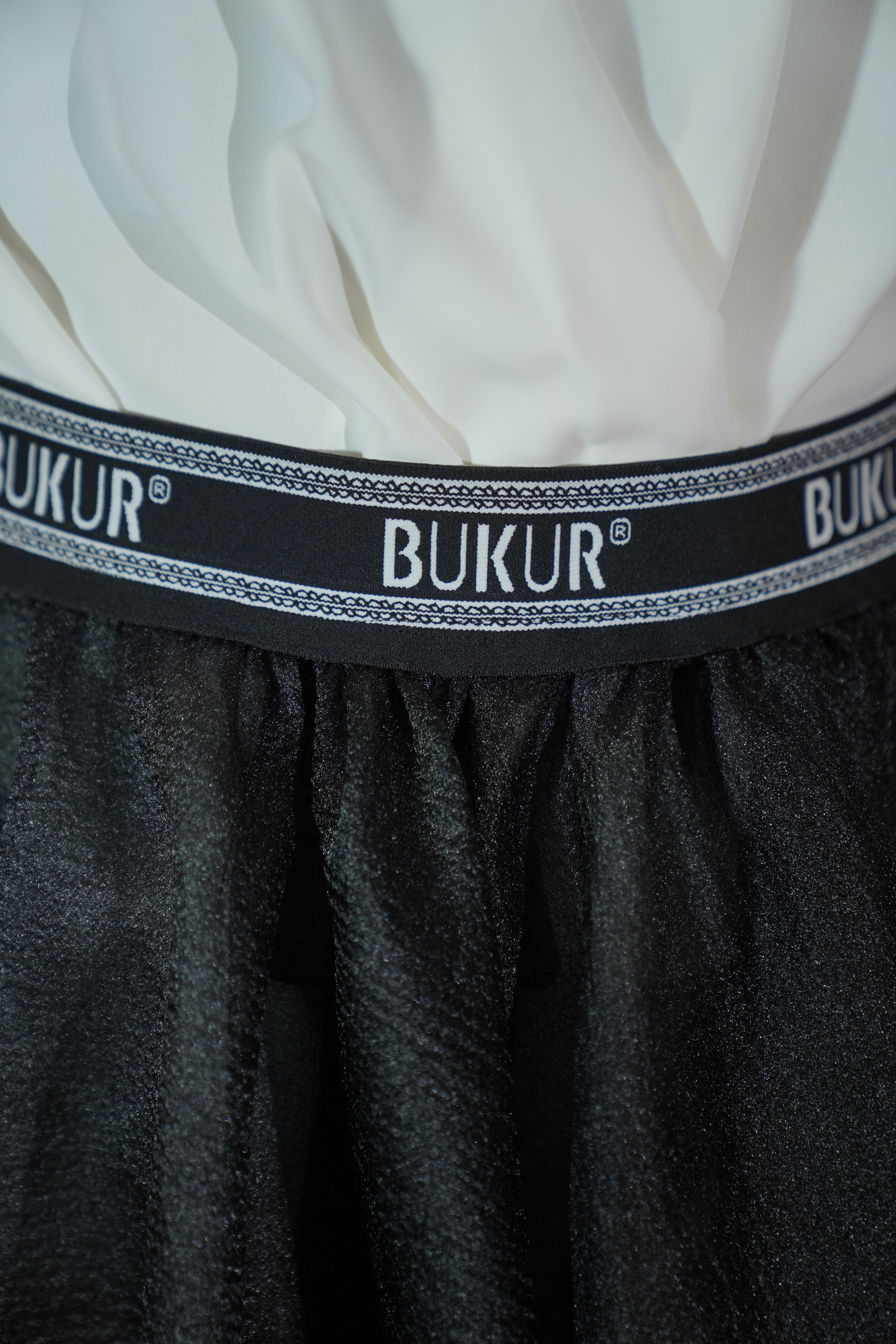 Fund i shkurtër në ngjyrë të zezë klasike, që kombinon thjeshtësinë elegante me hijeshi moderne. Materiali i lehtë dhe i tejdukshëm krijon volum të bukur dhe lëvizje natyrale, ndërsa ngjyra e zezë e bën këtë fund të përshtatshëm për çdo rast.