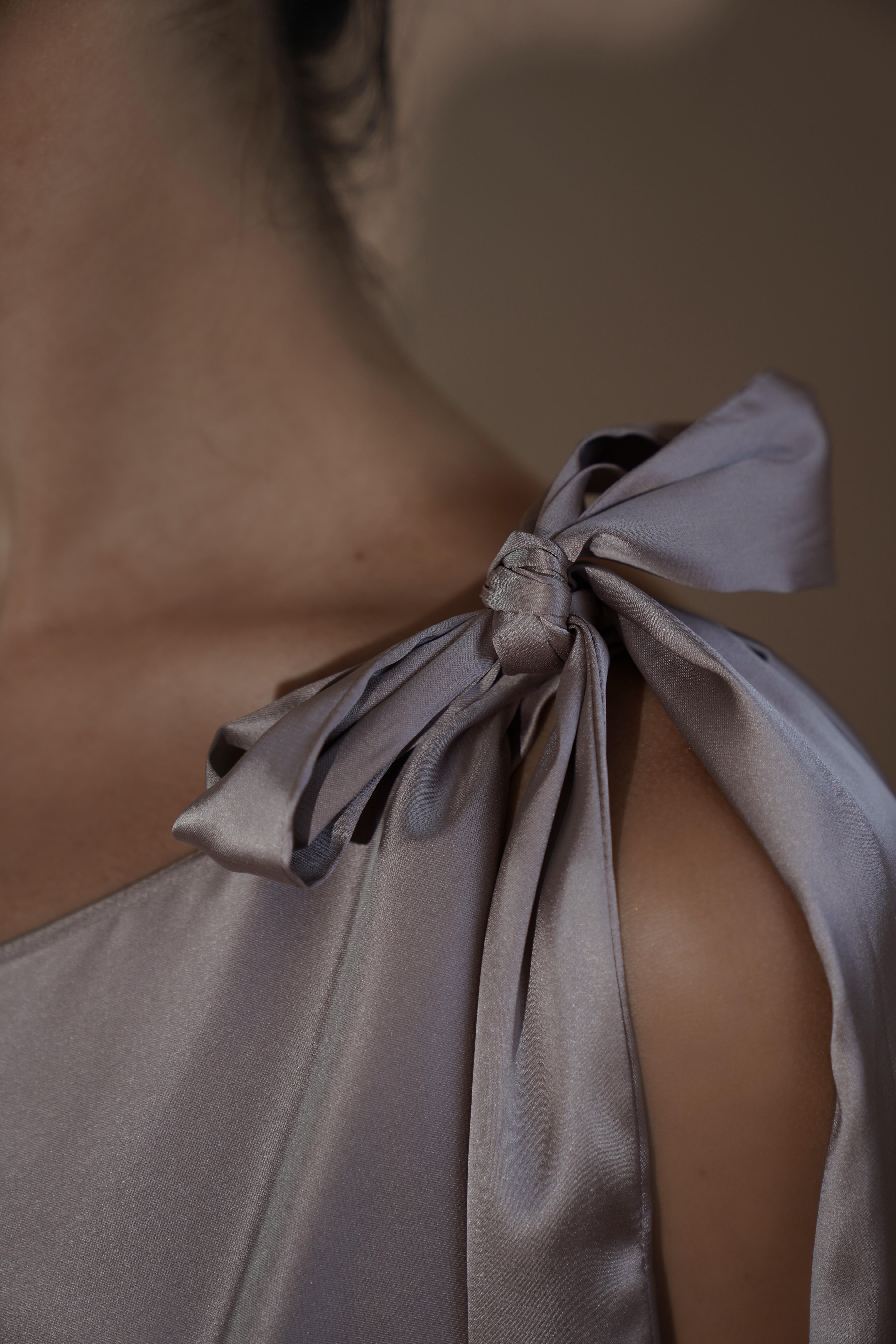 Fustan i gjatë nga BUKUR, i punuar nga material sateni me shkëlqim të lehtë për një pamje luksoze dhe elegante. Modeli me një sup të zbuluar dhe prerje të lirshme krijon rënie të bukur dhe komoditet maksimal, duke reflektuar finesë dhe modernitet. Ngjyra neutrale e butë e bën ideal për mbrëmje gala, kokteje apo evente festive ku dëshironi të shkëlqeni me stil unik.