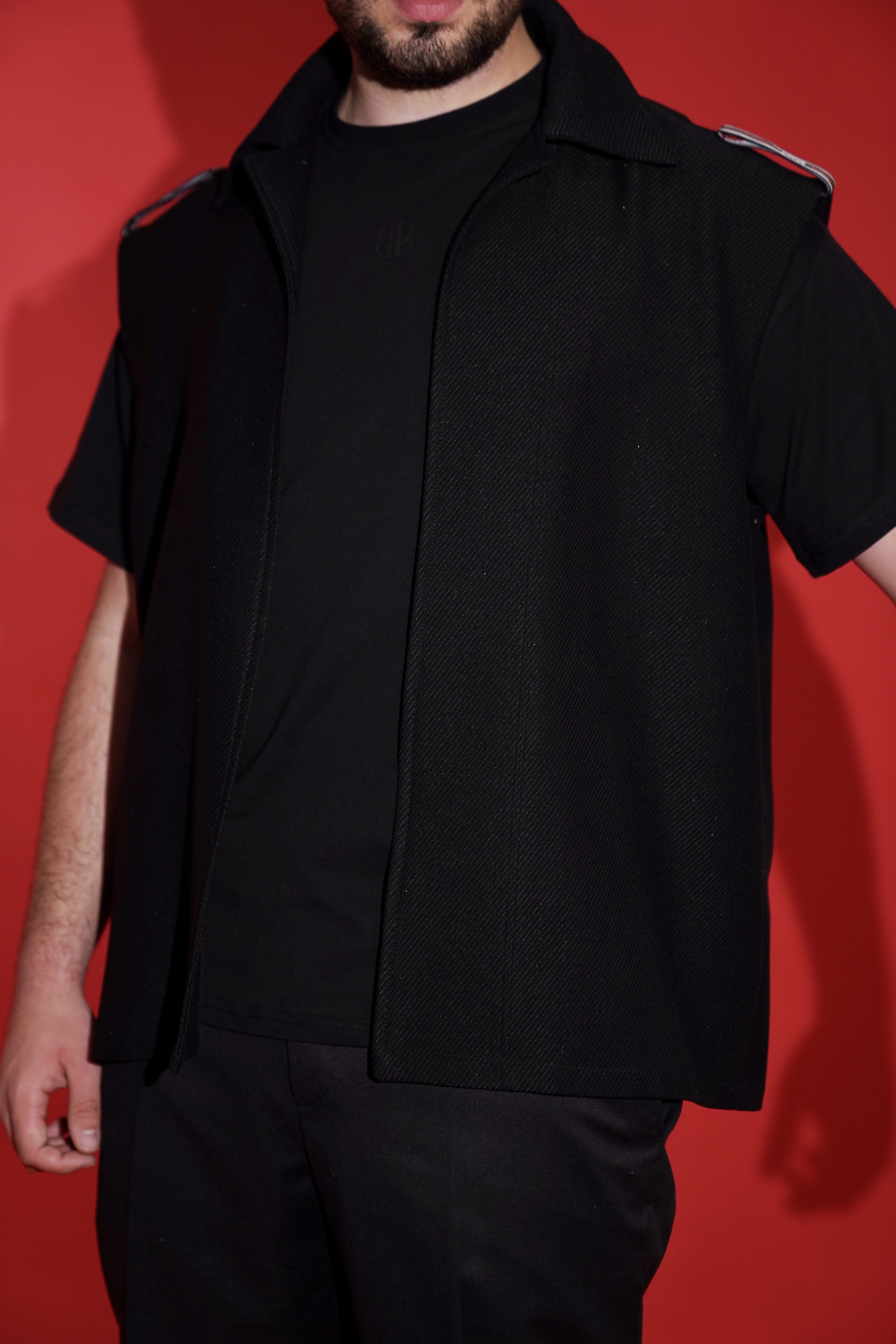 Jelek elegant dhe modern në ngjyrë të zezë, që përfaqëson një balancë perfekte mes stilit minimalist dhe qëndrueshmërisë urbane.