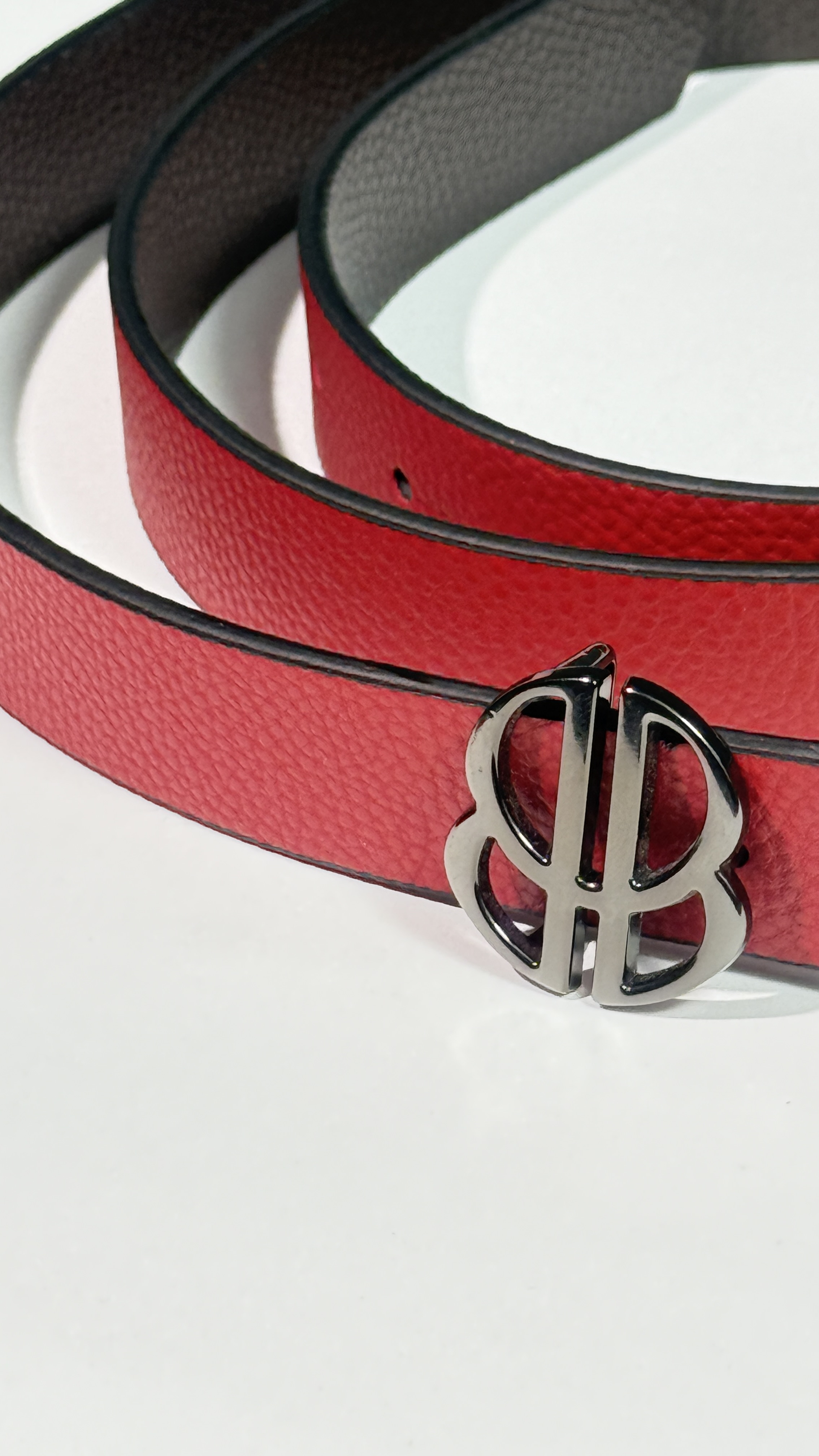 Rrip Dyngjyrësh me Logo “BB” Silver – Kthyes & Elegant Rrip modern dhe funksional me dizajn kthyes dhe logo metalike “BB”, perfekt për çdo stil. Dizajn Kthyes: • Material: Imitim lëkure (sintetik) • Njëra anë e zezë klasike • Ana tjetër e kuqe • Dy pamje të ndryshme në një rrip të vetëm Logo Silver “BB”: • Logo me shkëlqim në ngjyrë argjendi, gold klasik, e zeze • Madhësi: 3.2 cm Përmasat: • Gjatësia: 110 cm • Gjerësia: 3 cm • Vrima të parafabrikuara për përshtatje të rehatshme