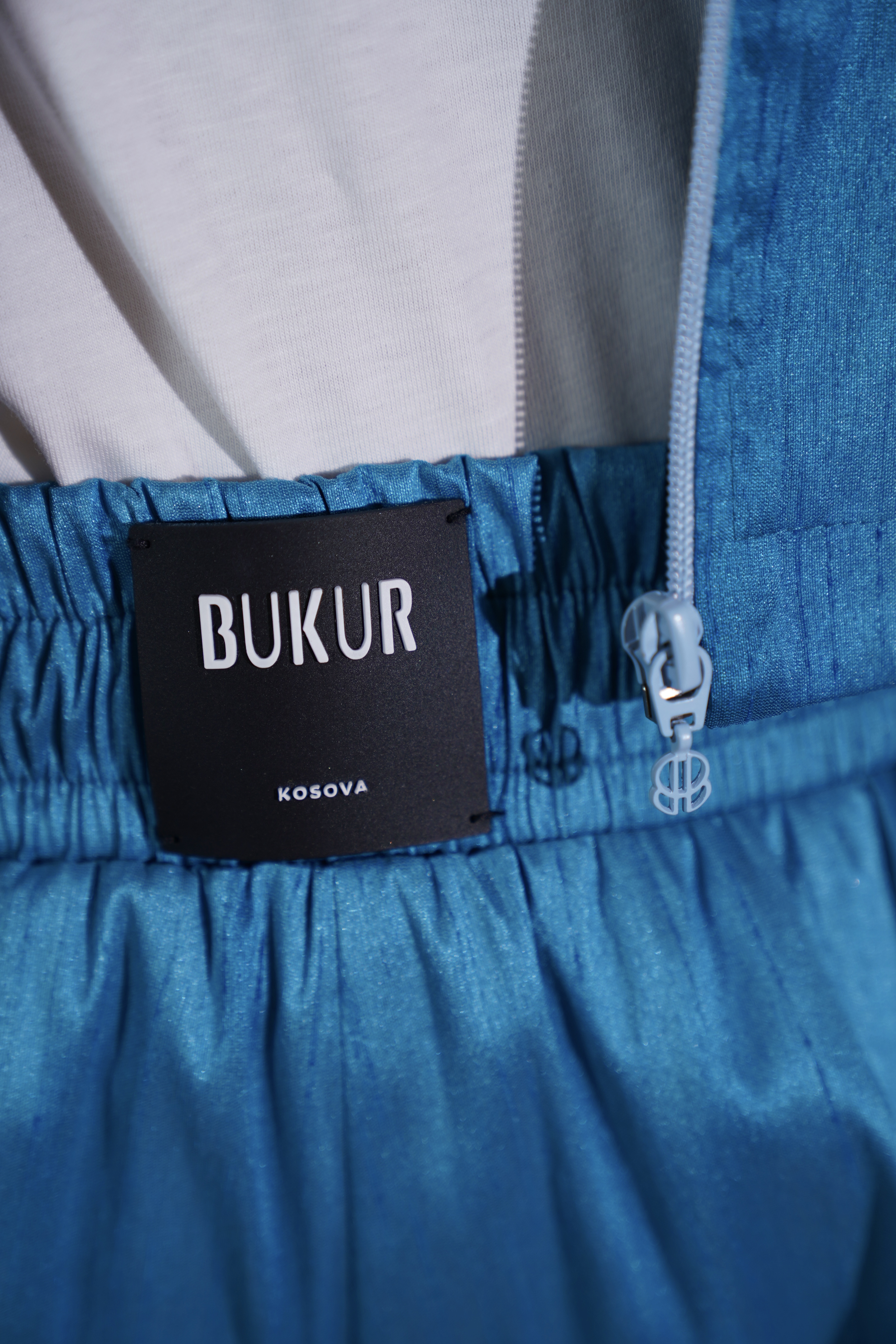 Set femëror në ngjyrë blu elektrike, i përbërë nga xhaketë e shkurtër me prerje moderne dhe pantallona të shkurtra me bel të lartë elastik. I kombinuar me bluzën bazë BUKUR, ky set sjell një pamje urbane, freskuese dhe trendi, ideal për ditët e ngrohta dhe dalje plot stil.