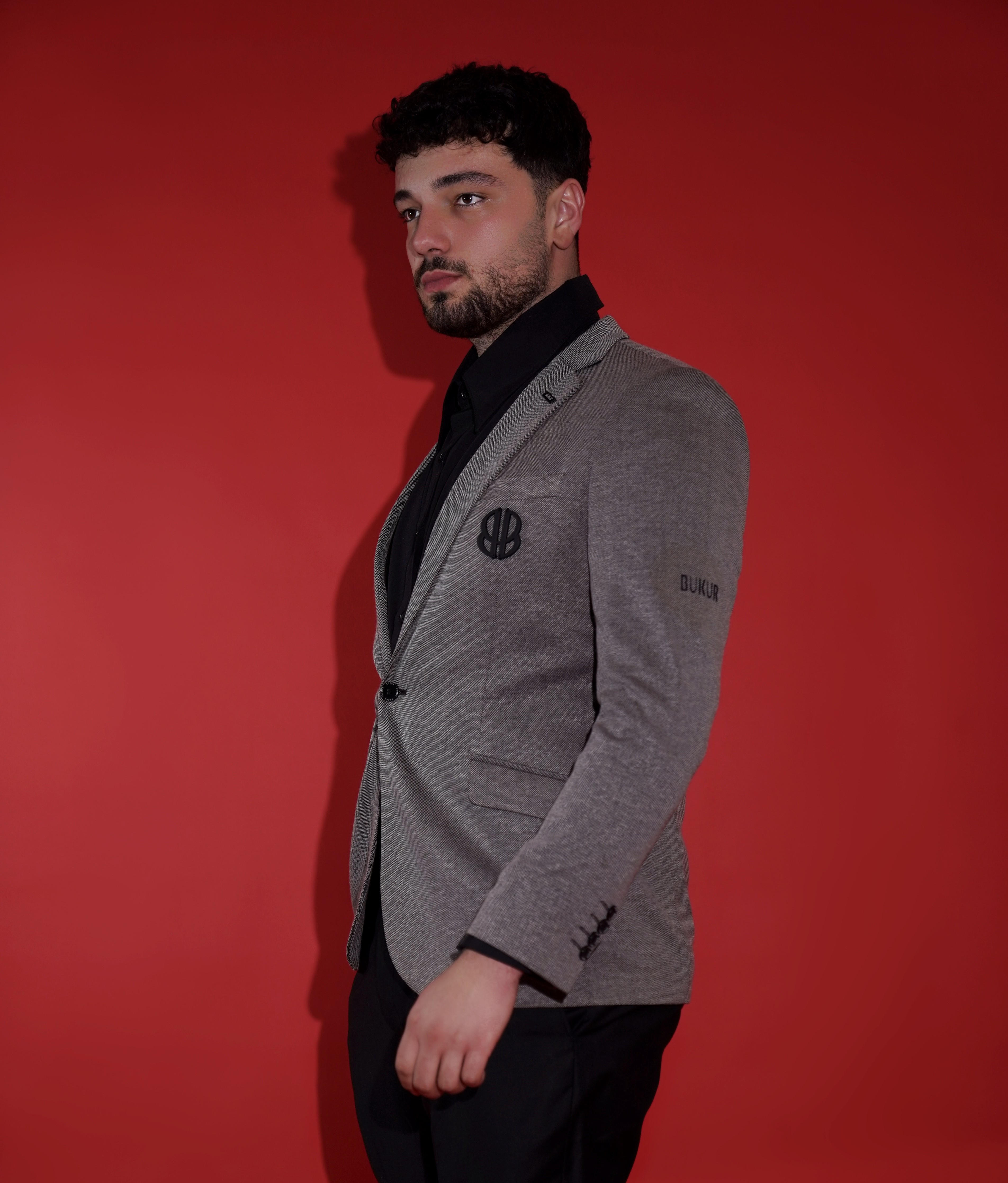 Setër në ngjyrë gri elegante, me një prerje klasike dhe të përshtatur që thekson siluetën mashkullore me finesë. Ka një dizajn me dy kopsa përpara, jakë me formë klasike “lapel”, dhe xhepa anësorë me kapak, që i japin një pamje të rafinuar dhe profesionale.