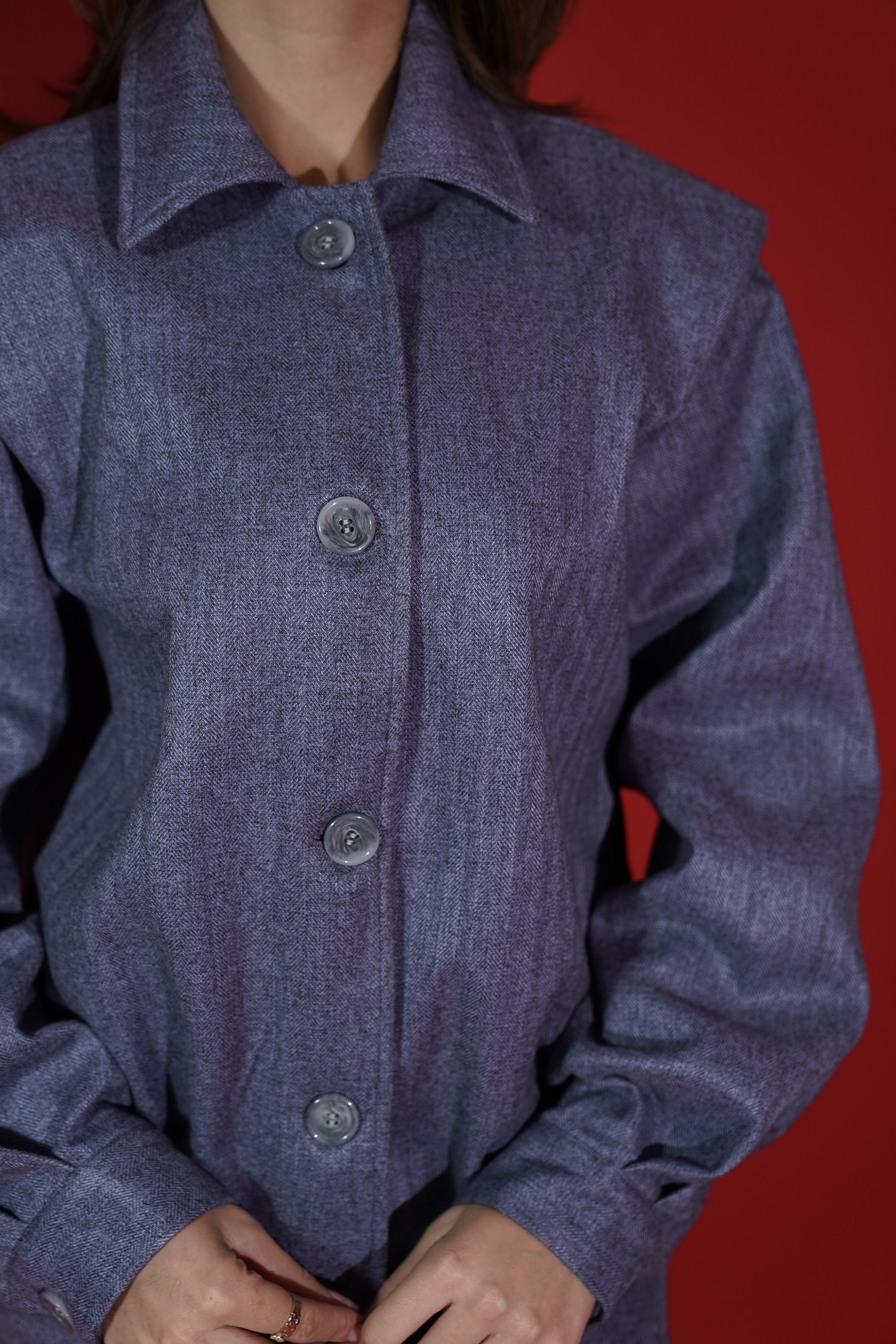 Set në ngjyrë blu denim me xhaketë të lirshme dhe fund të drejtë, që krijojnë një pamje moderne dhe të sofistikuar. Materiali i butë dhe detajet me kopsa të mëdha sjellin një ndjesi komoditeti dhe stili në çdo kombinim.