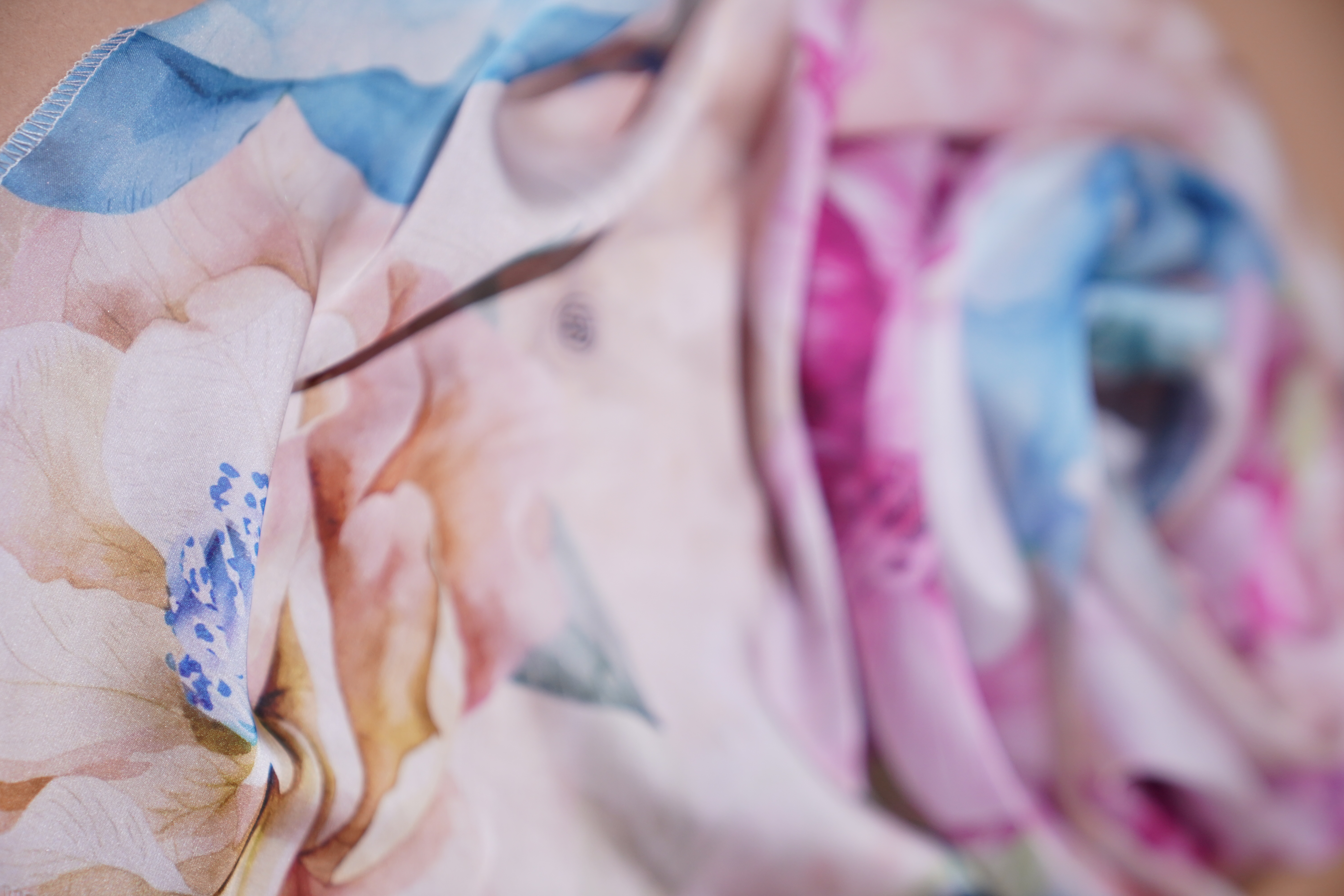 Shall elegant me motive lulesh në ngjyra pastel. I butë dhe i lehtë, perfekt për të sjellë një prekje femërore dhe plot freski në çdo veshje. Ideal për ditët pranverore dhe verore.