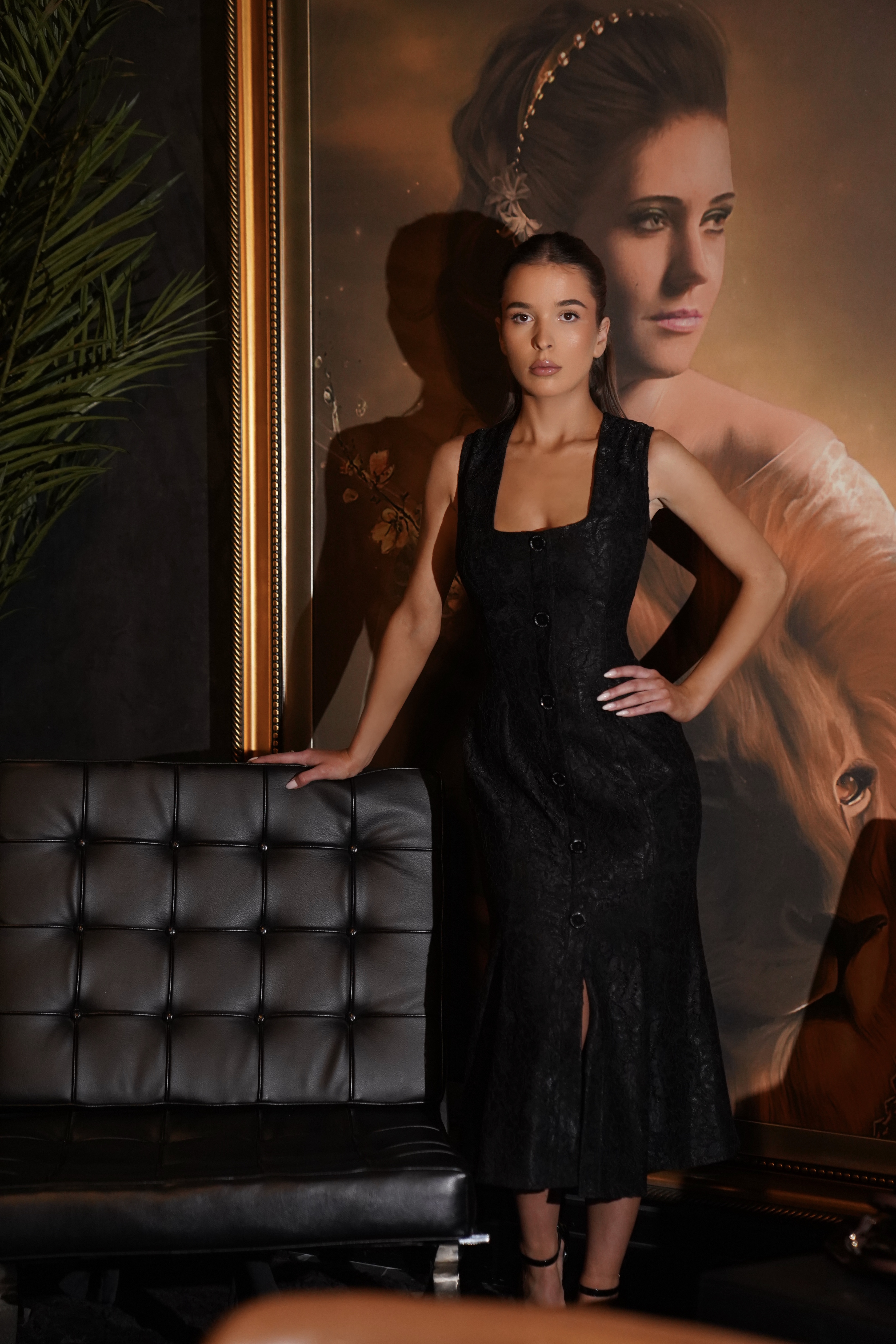 Fustan shumë elegant dhe sensual, me një dizajn të sofistikuar në ngjyrë të zezë.