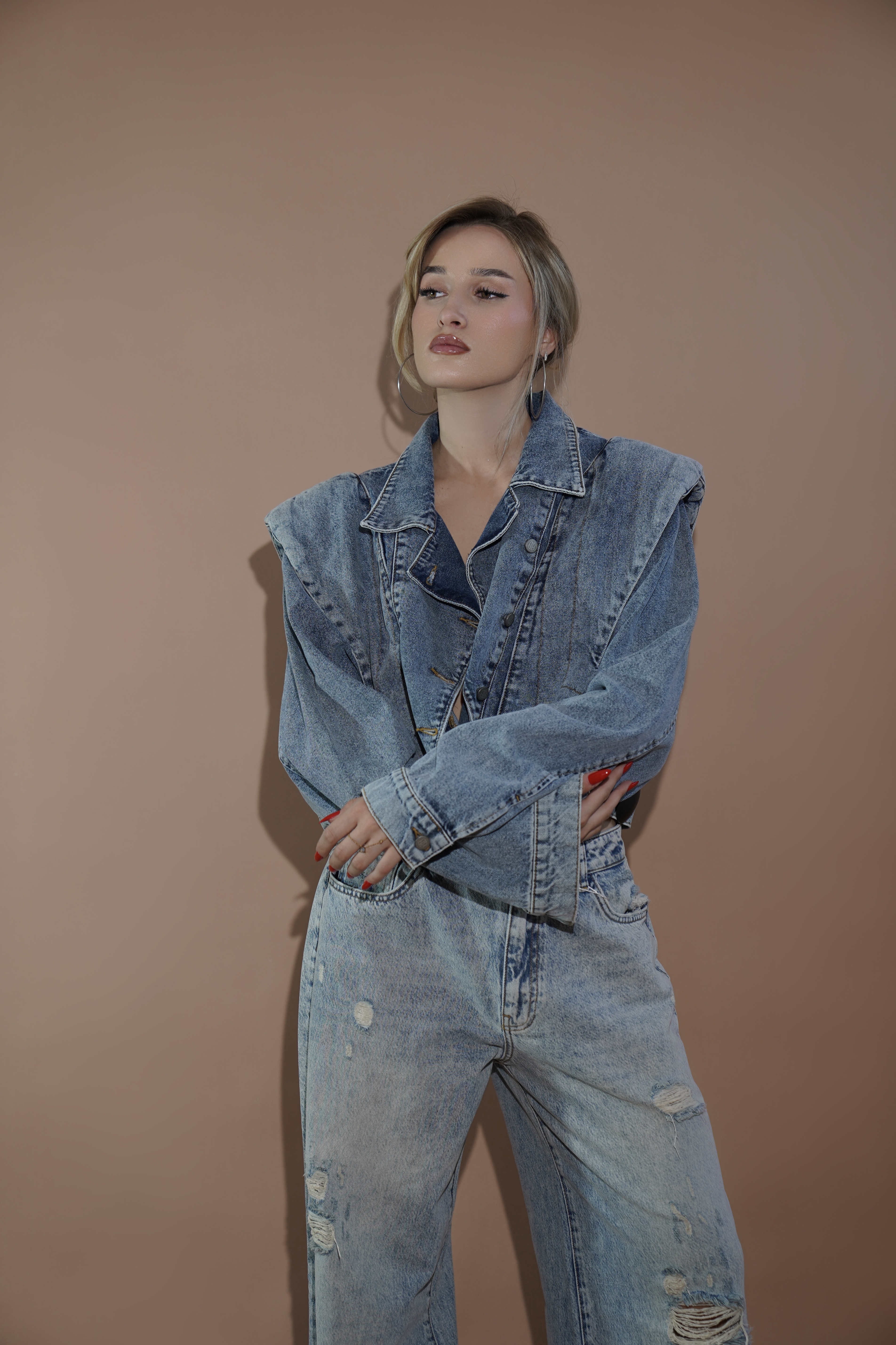 Xhaketë xhins me dizajn modern nga BUKUR, e punuar nga denim cilësor për një pamje të veçantë dhe të qëndrueshme. Me shpatulla të theksuara dhe prerje oversize, kjo pjesë sjell një estetikë urbane. Detajet minimaliste e bëjnë lehtësisht të kombinueshme, duke e kthyer në një veshje statement për çdo dalje casual apo street style.