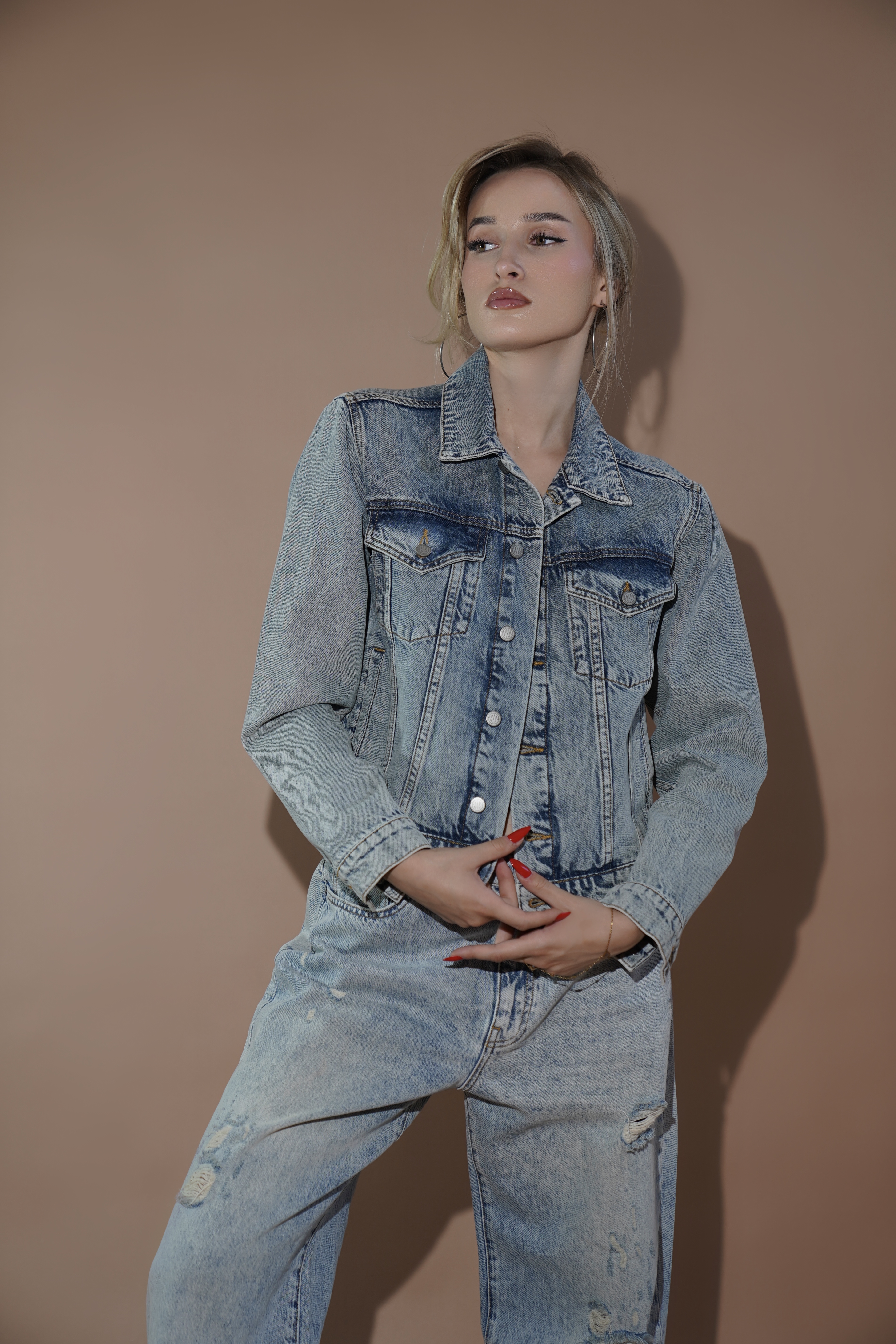 Xhaketë xhins me prerje klasike dhe kopsa metalike, e punuar nga denim cilësor për qëndrueshmëri dhe stil. Xhepat funksionalë shtojnë prakticitet, ndërsa logoja BB në pjesën e pasme i jep një prekje unike dhe urbane. Një veshje ikonike, perfekte për çdo kombinim casual apo street style.