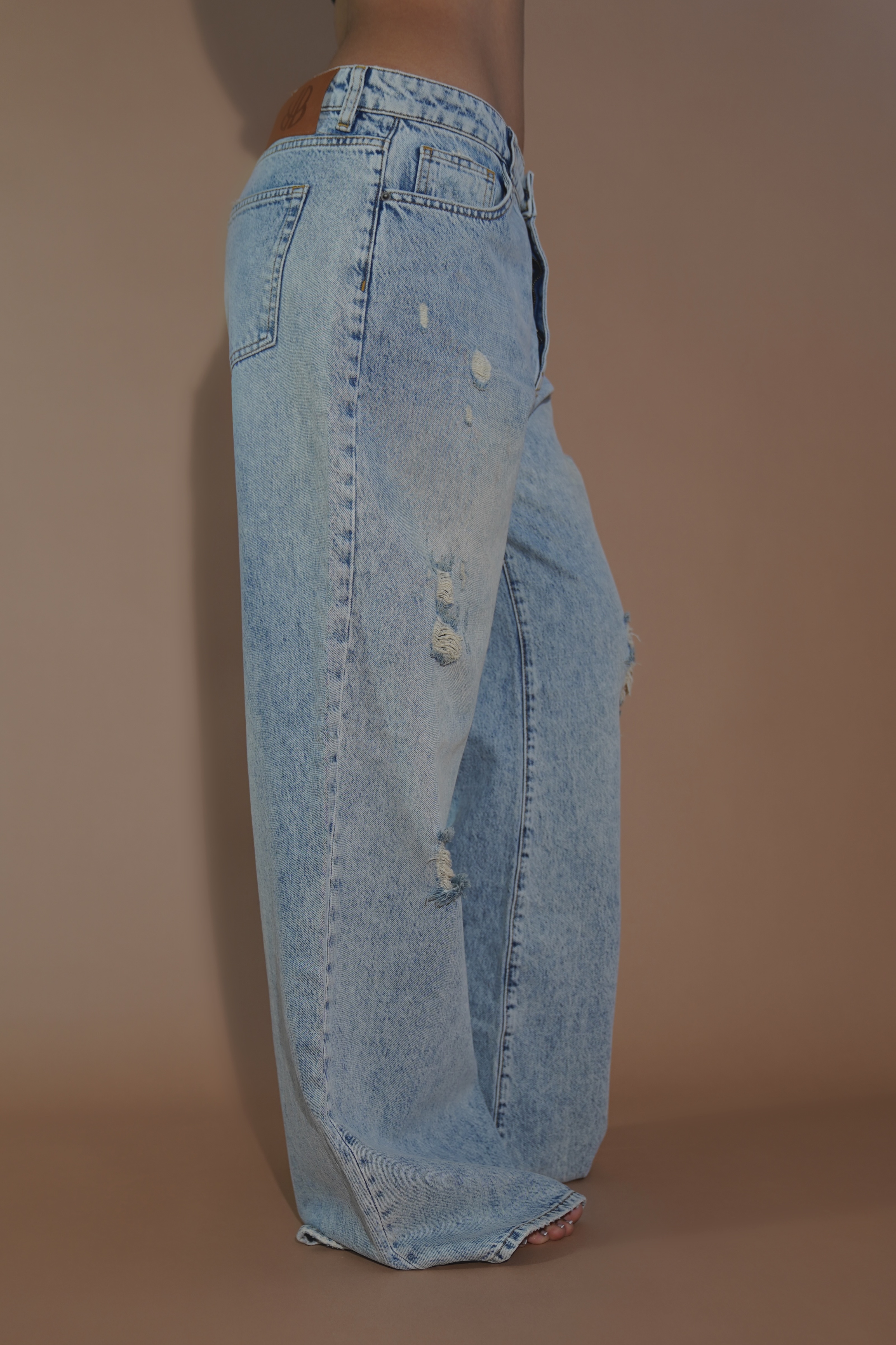 Xhinse blu nga BUKUR, të punuara prej pambuk për komoditet dhe cilësi të lartë. Me prerje të lirshme (baggy fit) dhe detaje të grisura për një pamje urbane e moderne. Ngjyra blu e hapur me efekt “washed” i jep stil vintage, perfekte për kombinime casual që dallohen.
